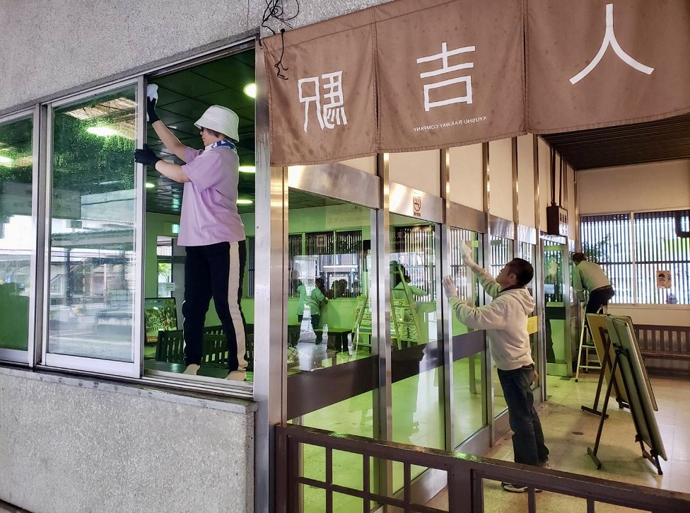 ホーム開放にあたり、『プロジェクト62人吉』の皆さまにお力添えをいただき人吉駅内の清掃作業をしていただきました。ありがとうございました。