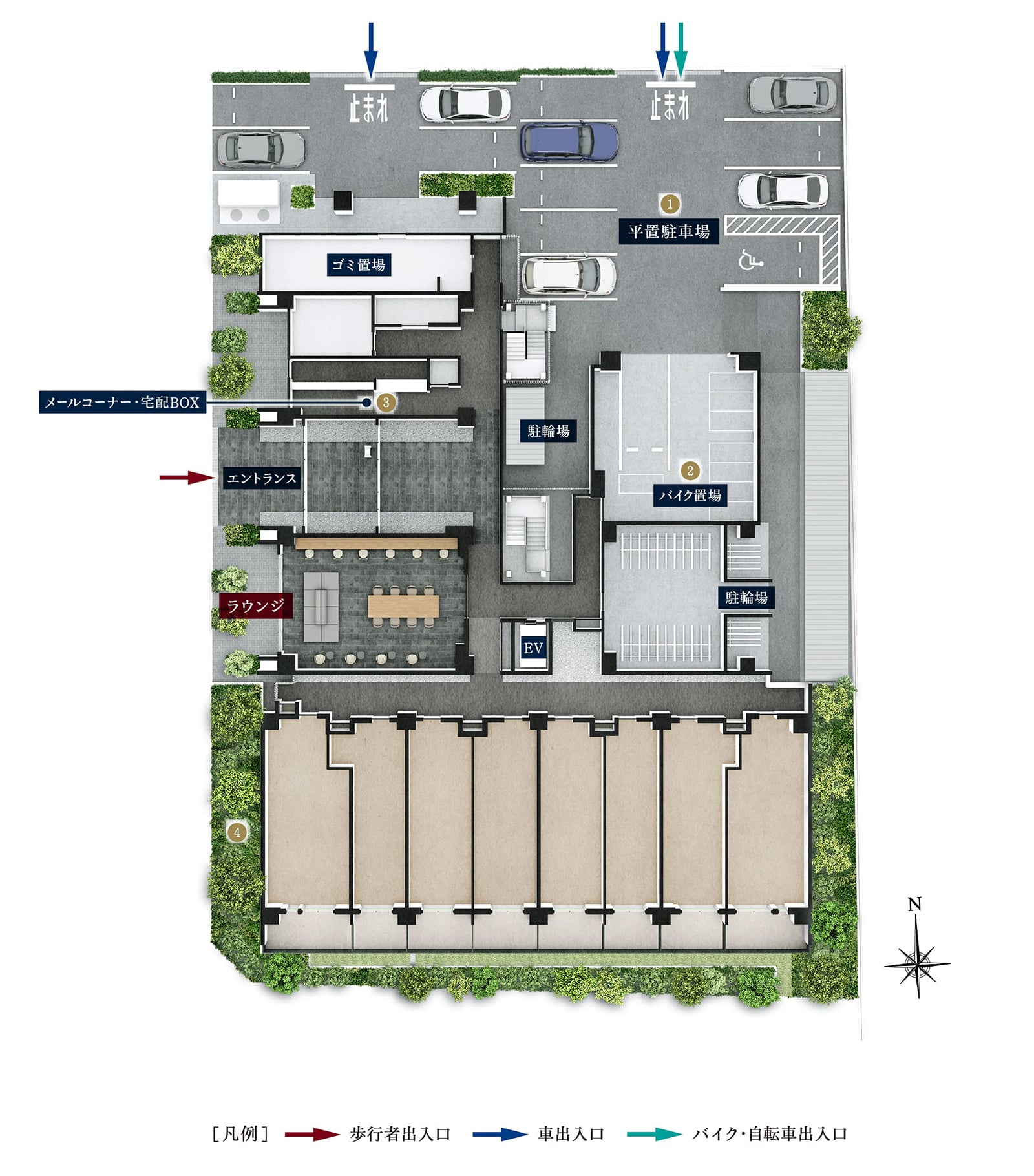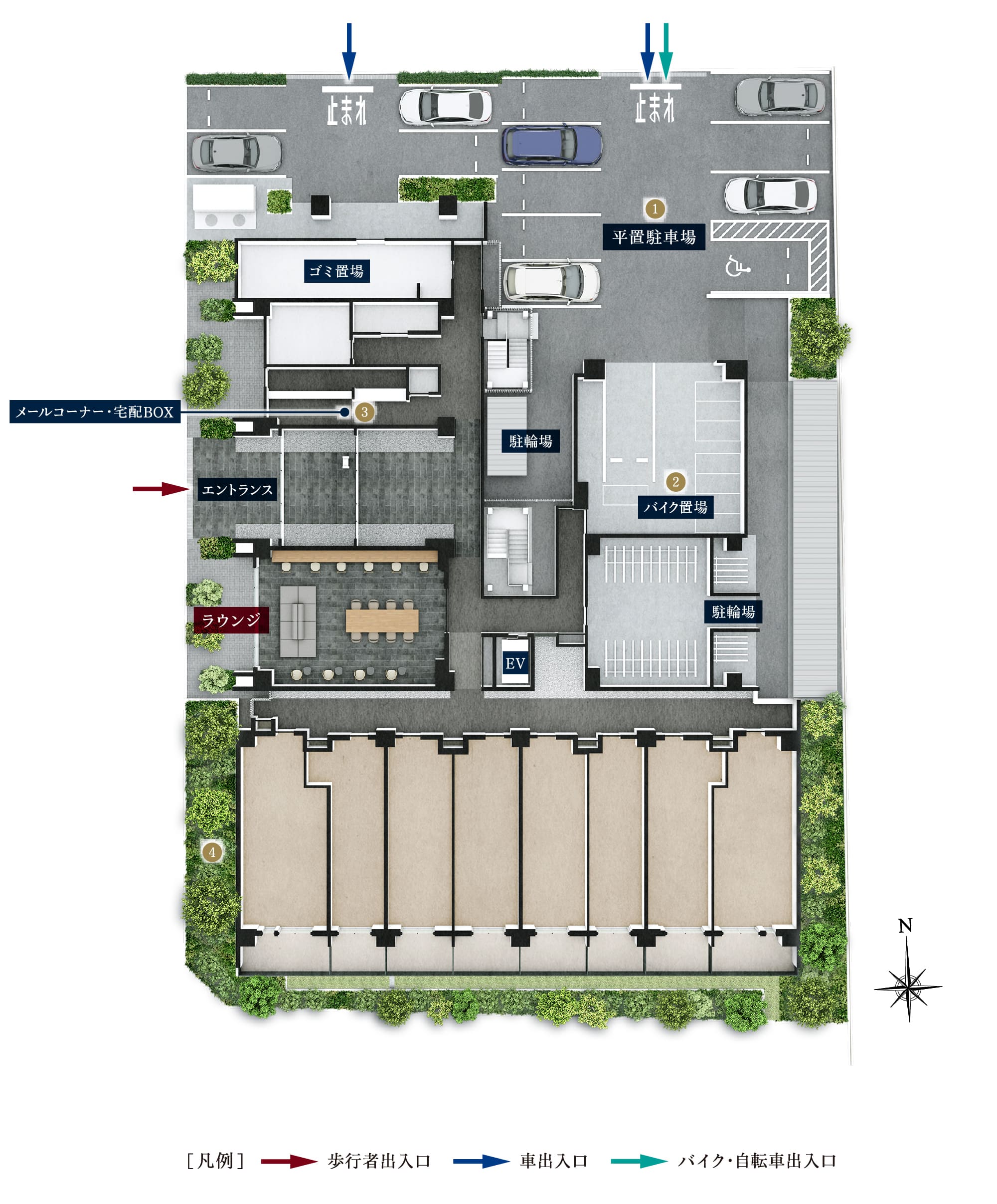 - ※掲載の外観完成予想CG・エントランス完成予想CG・ラウンジ完成予想CG・敷地配置図は、計画段階の図面を基に描き起こしたもので、実際とは異なります。外観形状の細部、設備機器等は表現しておりません。