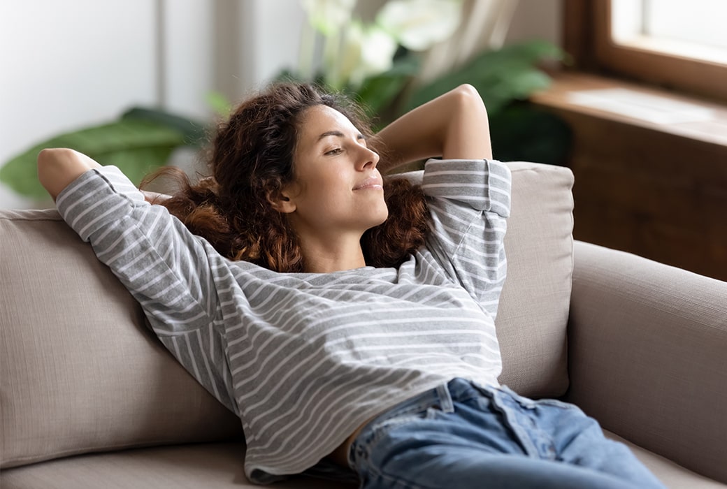 窓際にはゆったりと座れるソファをご用意。植栽を眺めながら読書や会話を楽しめるくつろぎのコーナーです。