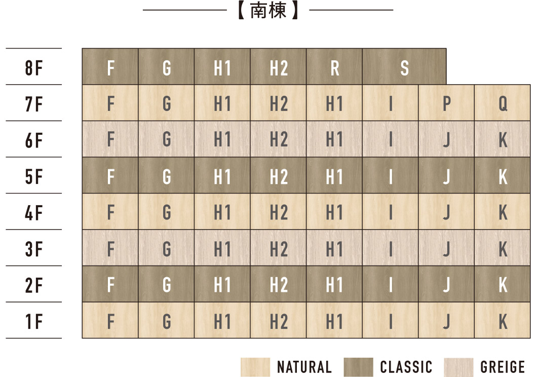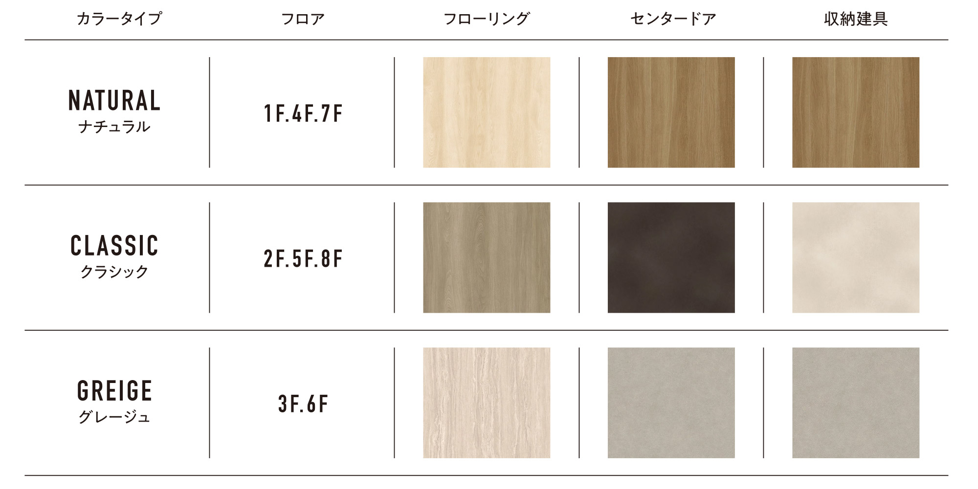 - ※間取りタイプ・階数によって採用されているカラーセレクトは異なります。実際の色味は多少異なります。
