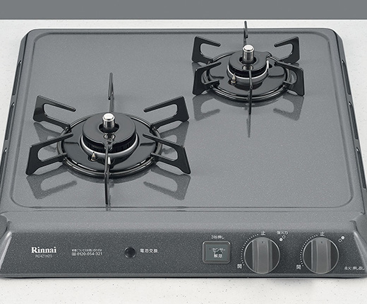 様々な料理をお楽しみいただける、シンプルで使い勝手のよい2口コンロを設置しました。