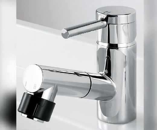 大型レバーで操作しやすく、水ハネを抑えた泡沫吐水式です。