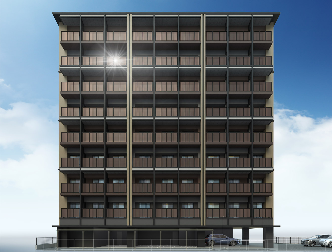 - ※掲載の完成予想図は設計図を基に作成したCGで、形状・色等は実際のものと異なります。なお、外観形状の細部、設備機器等は表現しておりません。また、敷地周囲の電柱・標識・ガードレール等についても再現しておりません。