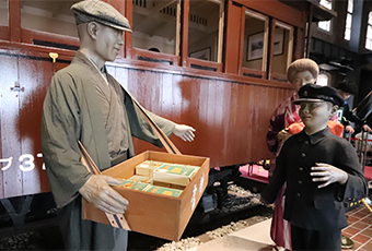 『九州鉄道記念館』では、九州最初の駅弁販売のシーンが車両とともに再現され、発売当時~戦前の駅弁の掛け紙も見ることができます。