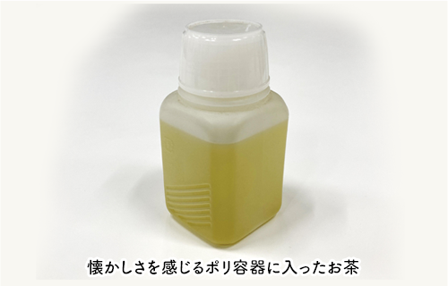 昭和50年代には缶入りタイプに代わり、持ち運びが便利なペットボトルが出回ると、ポリ容器のお茶は姿を消していきました。