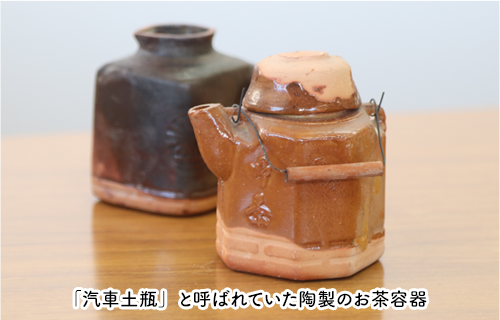 駅弁に付きもののお茶。容器に入ったお茶が駅弁と一緒に販売されるようになったのは、明治20年代といわれています。今やペットボトルが主流ですが、自販機や携帯できるお茶が無かった頃は画期的でした。