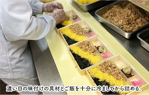 食の安全を考えた上で、駅弁業者が長年かけて編み出した“ちょっと濃い目の味付け”や調理法・保管にも工夫があり、食べる時の温度になるべく左右されないよう調整されているんです。