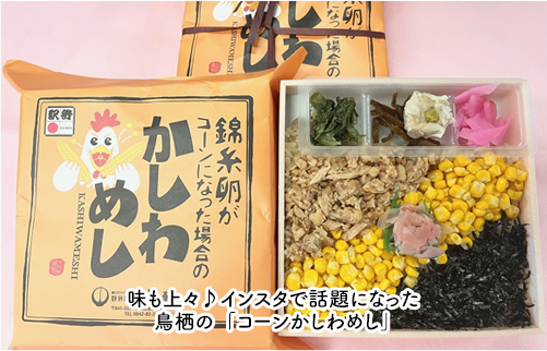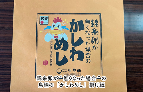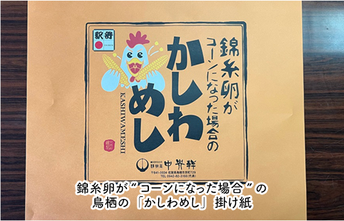鳥栖の「かしわめし」に欠かせない錦糸卵。これがなくては駅弁が作れません。代わるものがないか必死で考え抜いてたどりついたのが「コーン」でした。黄色いコーンは見た目もそっくり(?)かしわと味の相性も良くて“これならイケる!”と一時的に販売に踏み切って話題になりました。今ではすっかり卵の供給も安定し、昔ながらの鳥栖の「かしわめし」が販売されています。