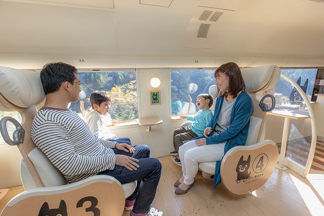 窓側がいつも子供席になるように配慮された転換クロスシートの親子席。