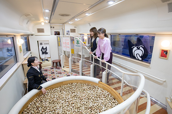 ファミリー車両の「木のプール」は客室乗務員と一緒に子どもたちが遊べる空間。