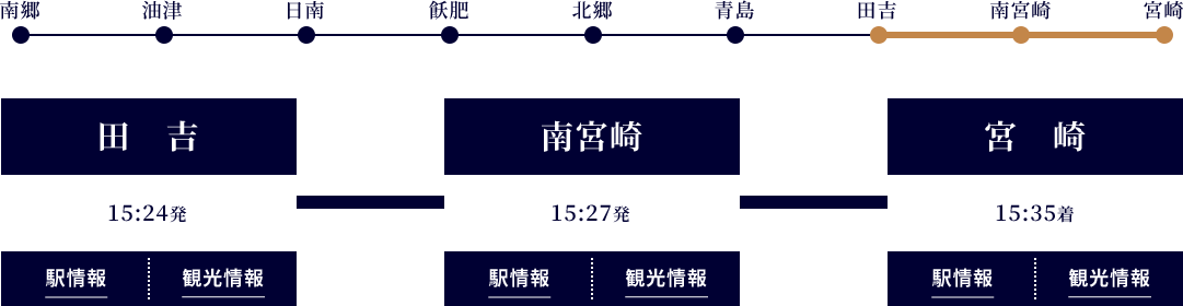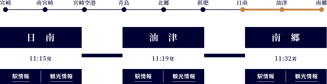 宮崎県の日南地域に伝わる“日向神話”から来ている“海幸彦・山幸彦”伝説。車内ではこれを紹介する乗務員手作りの「紙芝居」や、沿線の「鵜戸神宮」の「運玉」を模した「運だめし体験」など世界観が体験できます。「車内販売」をメインに客席でのパネル等のご案内、出入り口でのお迎え、お見送りなど笑顔あふれるサービスで楽しい旅を演出しています。