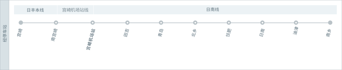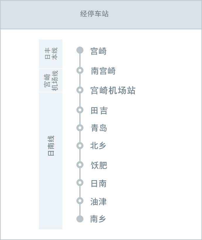 ※开往宫崎方向的列车不停靠宫崎机场站。