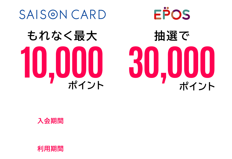 ご入会日から2026年2月23日(月・祝)までに200,000円以上ご利用いただいた方の中から抽選で10人に1人に30,000ポイントをプレゼント