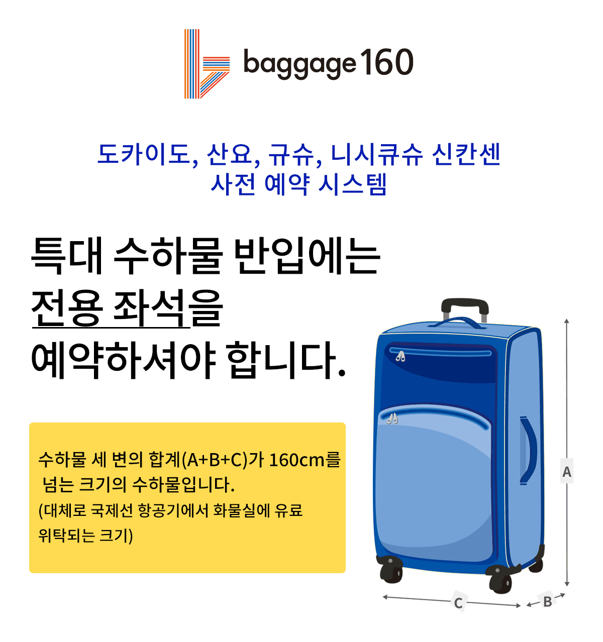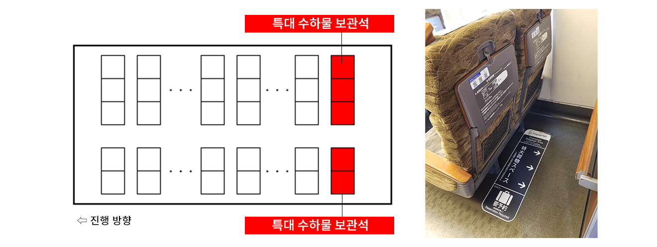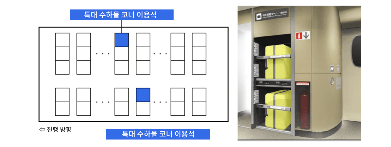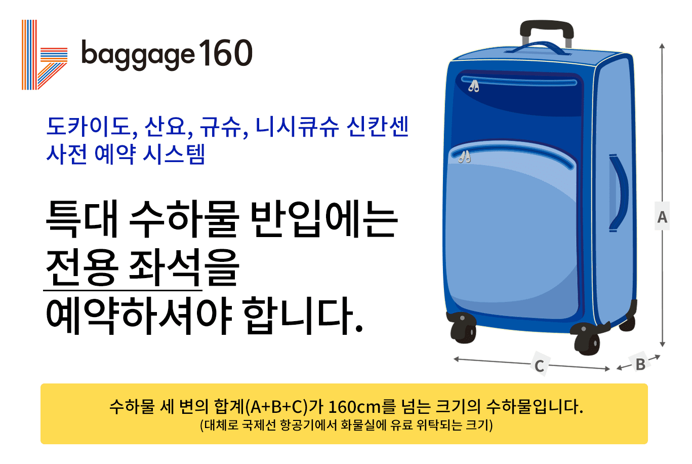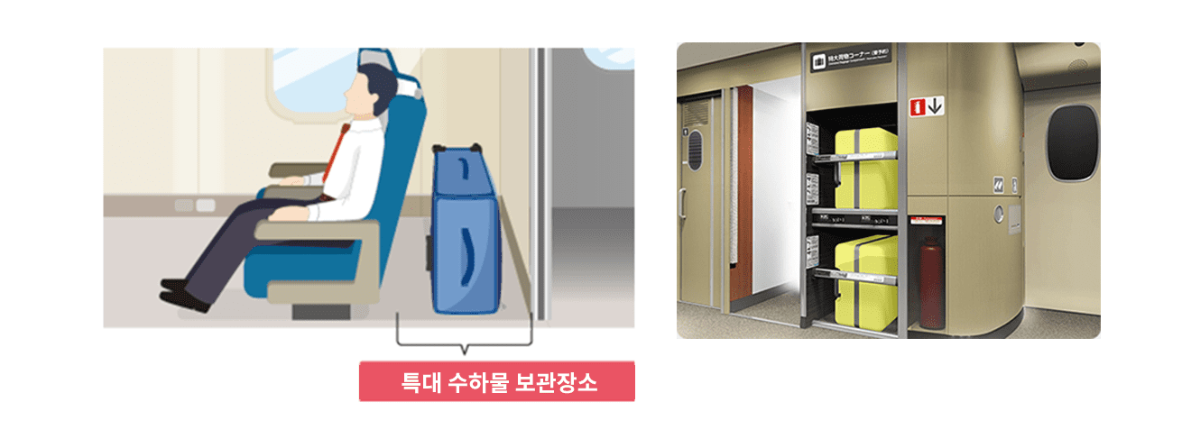 1.승차권을 구입하실 때 '특대 수하물 보관석' 및 '특대 수하물 코너 이용석'을 예약해 주십시오.