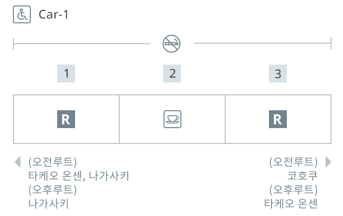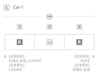 JR-KYUSHU Train Reservation 페이지에서 편도 및 왕복 승차권, 지정석 및 조기 할인 승차권을 구입하십시오.