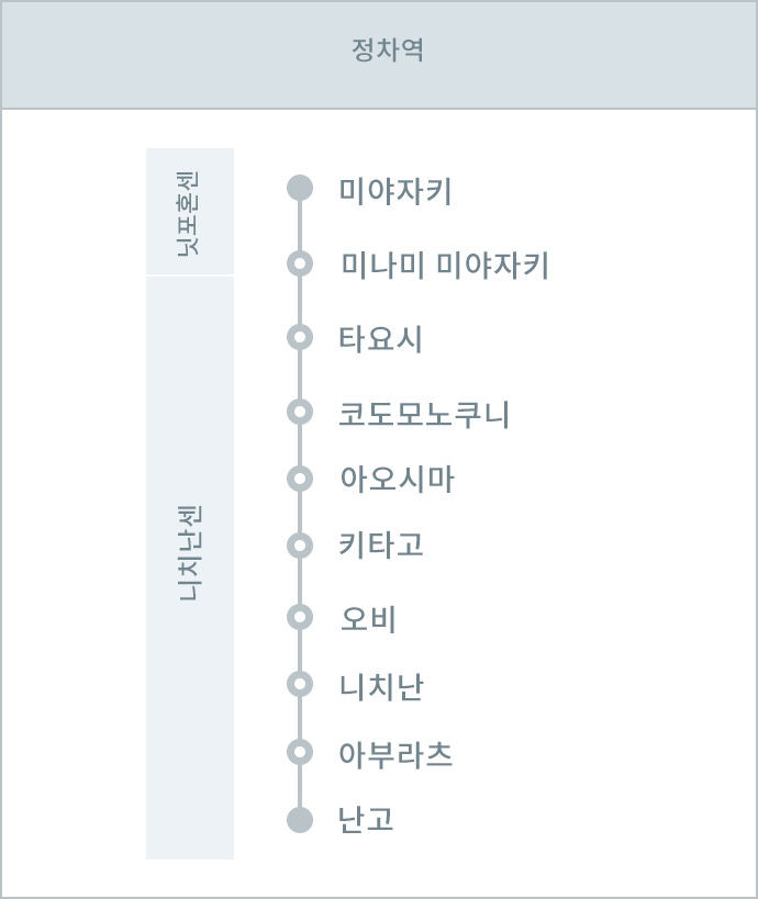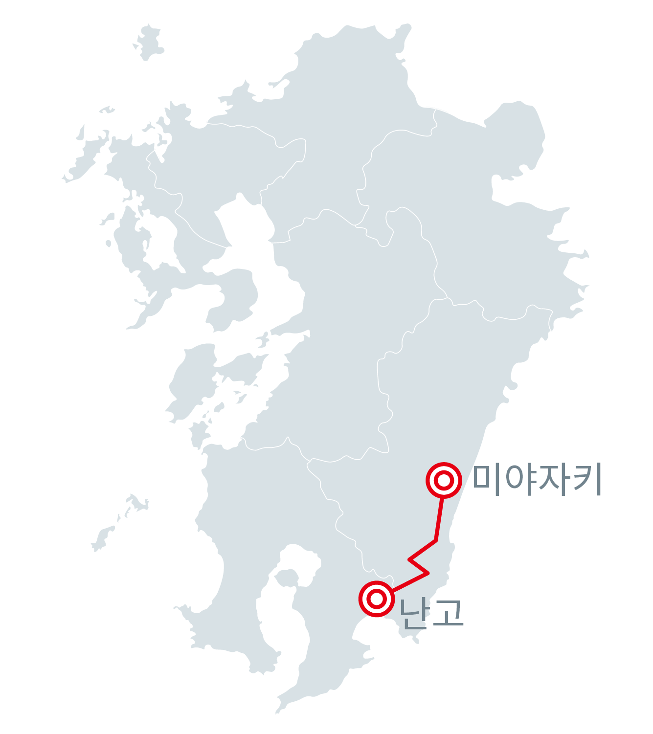 산과 바다에 미야자키만의 매력을 가득담은 특급 리조트 열차입니다. 바다와 산속을 경쾌하게 통과하는 이 열차는 미야자키의 자연 그대로를 즐길 수 있는 달리는 리조트입니다.