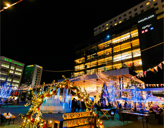 夏祭りの賑わい、冬のクリスマスマーケット、