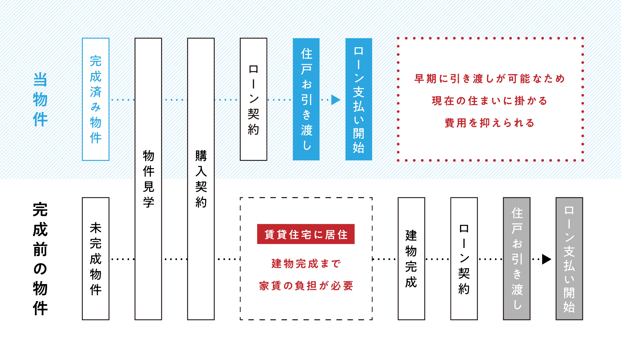未完成物件と比べて、完成済み物件はお引き渡しまでの期間を短縮できます。