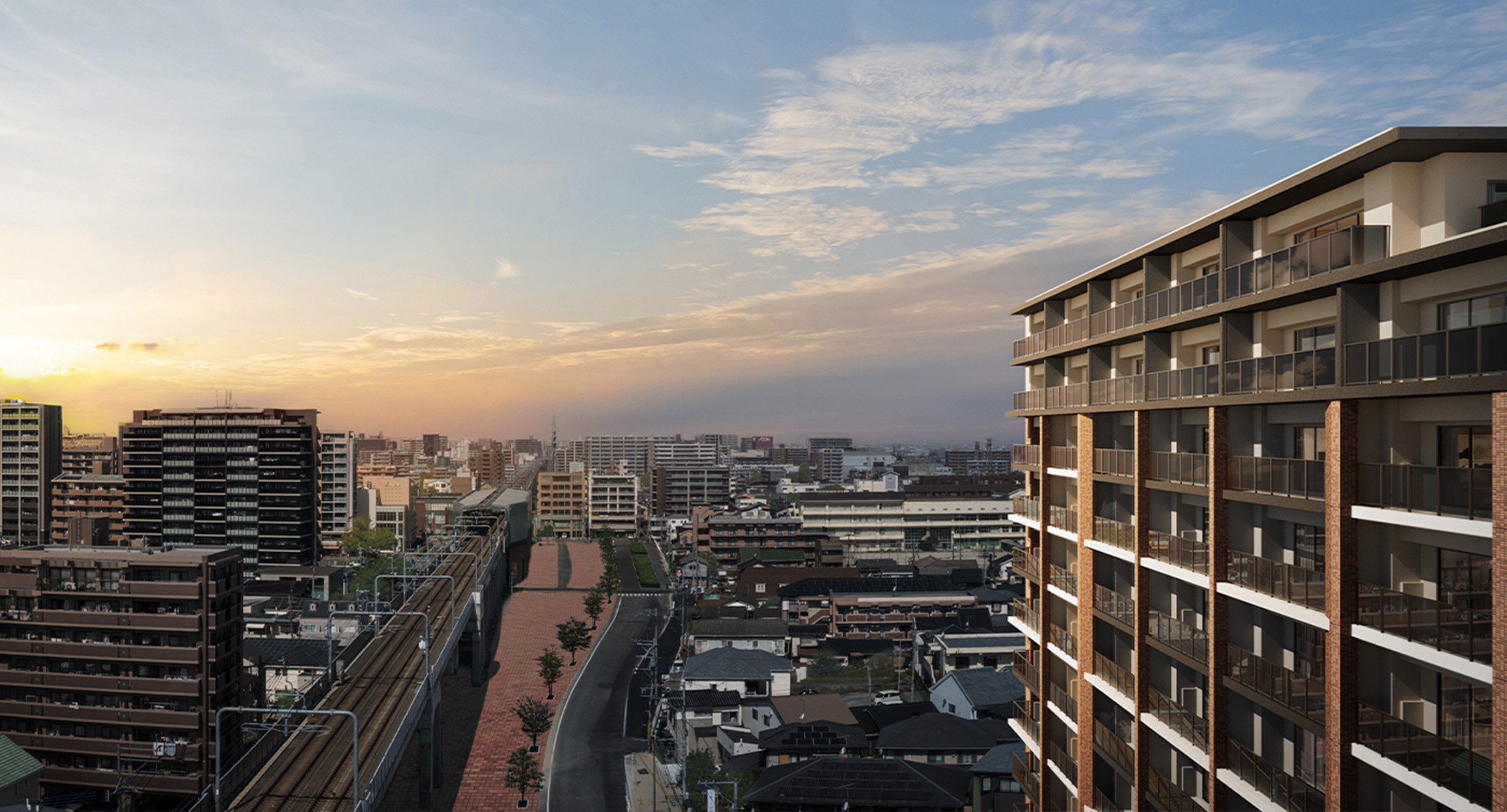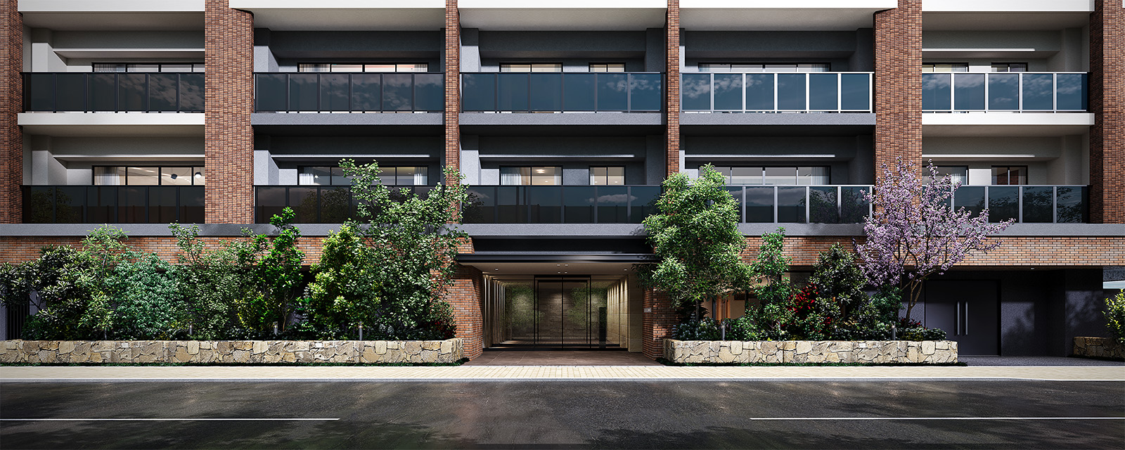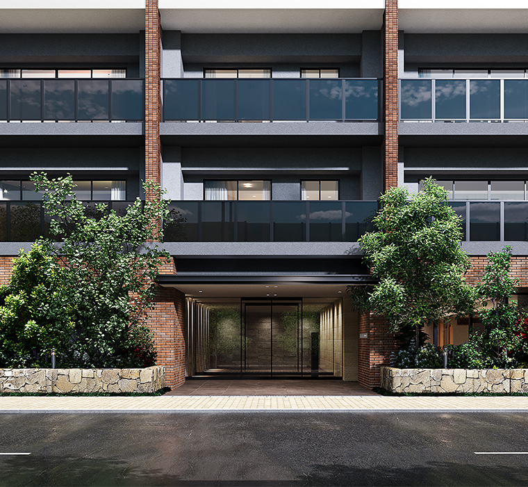 クリアなガラス手摺りとの異素材の組み合わせが、