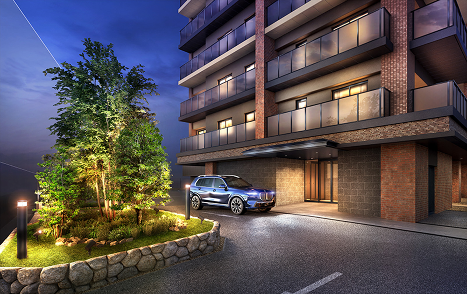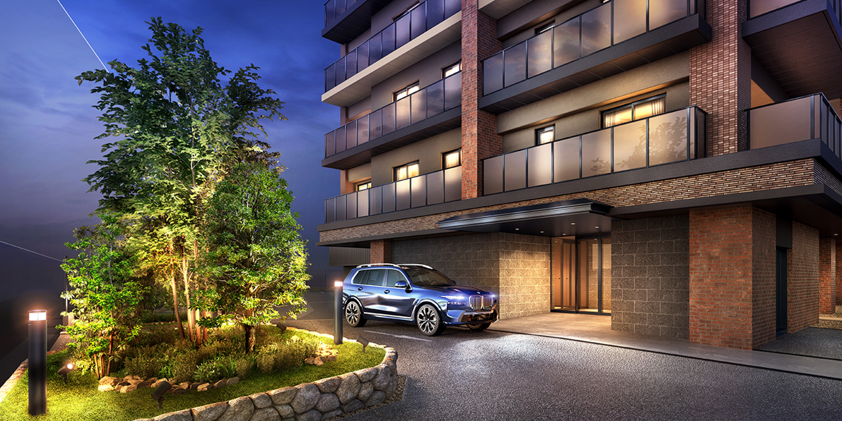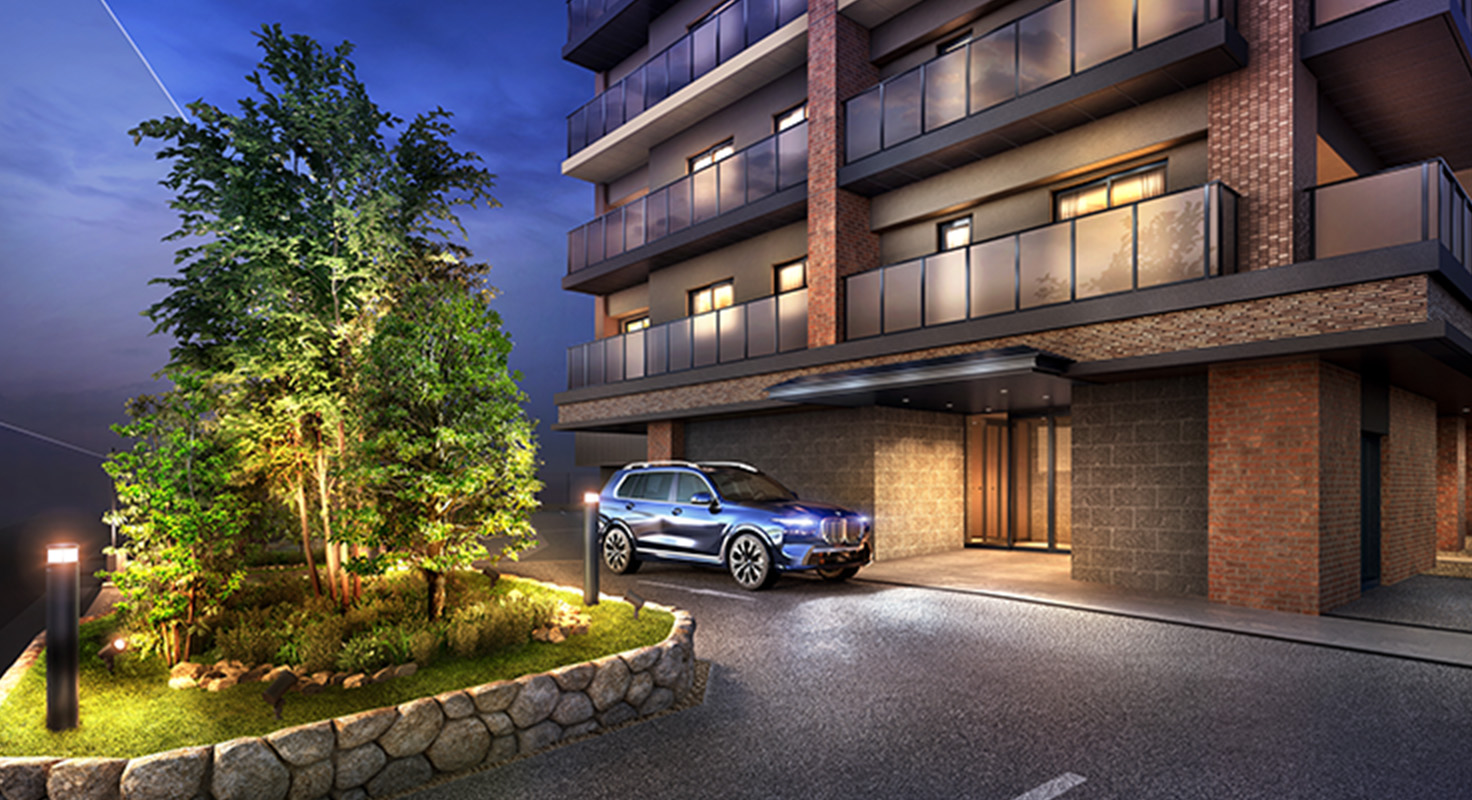 車寄せや植栽をレイアウトした
