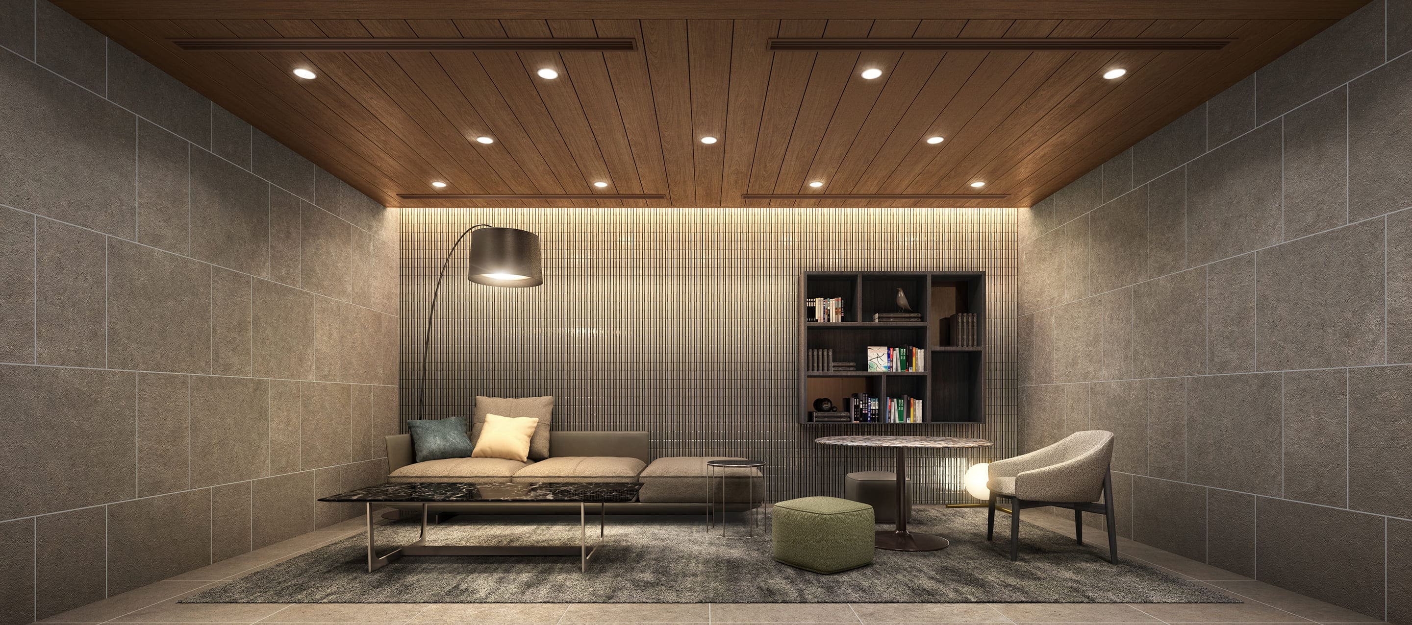 掲載のエントランスラウンジCGは、図面を基に描いたもので形状・色・位置等は実際とは多少異なり、調度品・家具等は変更になる場合があります。なお、形状の細部、設備機器等は表現されておりません。