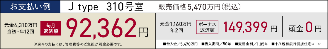 【掲載のお支払い例について】●提携ローン:十八親和銀行変動金利(元利均等)の場合です。●店頭金利:3.475%から借入全期間▲2.425%(年利)の金利引き下げを利用しております。●掲載の提携ローン金利・借入条件は2026年2月現在のものであり、今後変更が生じる場合がございます。提携ローン金利の決定時期は、ローン実行時(お引渡し時期)となります。●融資を受けるには、ご年収・ご年齢等一定の条件がございます。●ご購入に際しては、手付金のご用意が必要です。また、販売価格以外に別途諸費用が必要です。詳細は営業担当までお尋ねください。●毎月のお支払いには、別途管理費等のご負担が必要です。金額等の詳細は営業担当までお問い合わせください。