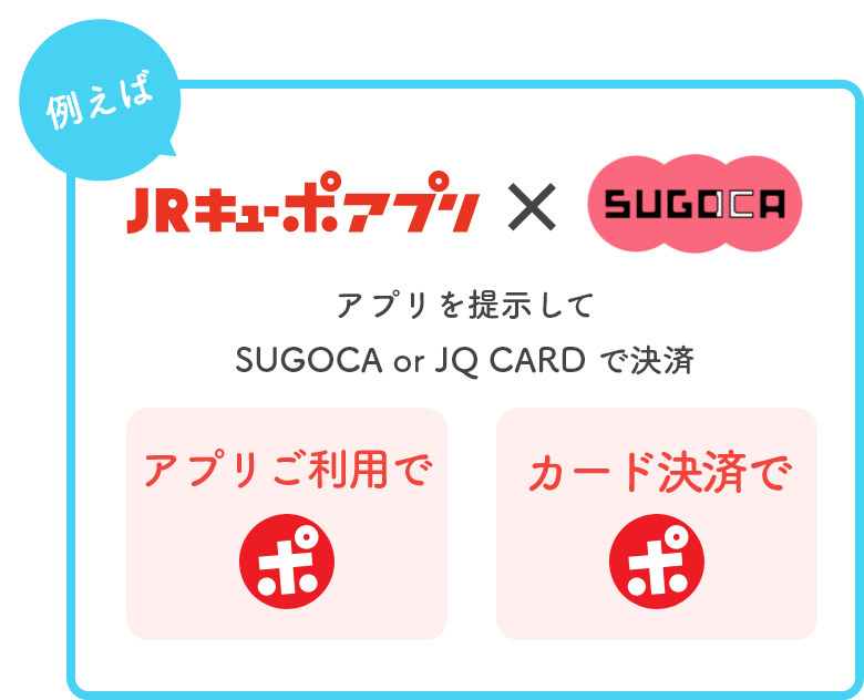 アプリに配布された「ポイント付与クーポン」を、JRキューポアプリ加盟店でのお買い物時に併せて使用すると、通常ポイントに加えてクーポン利用分のJRキューポが翌日以降に付与されます。