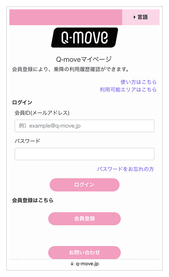 クレカ乗車でご乗車いただいた履歴は、QUADRAC株式会社が運営するQ-moveサイトでご覧いただけます。会員登録(無料 ※1)完了後、ログインしていただくと、クレカ乗車での乗車履歴が表示されます。