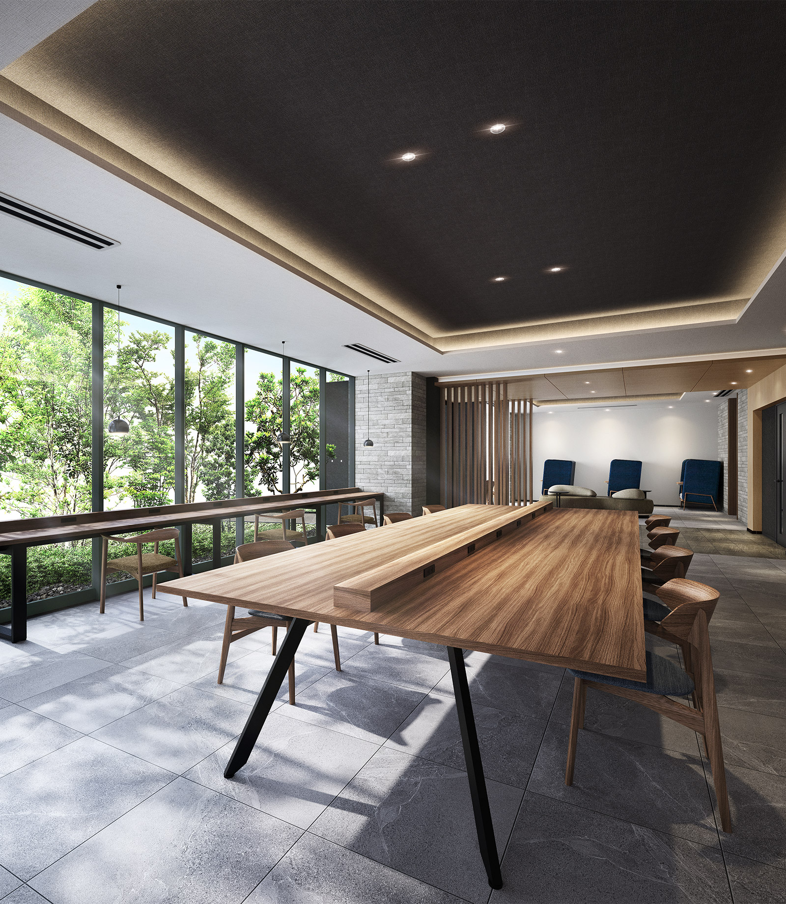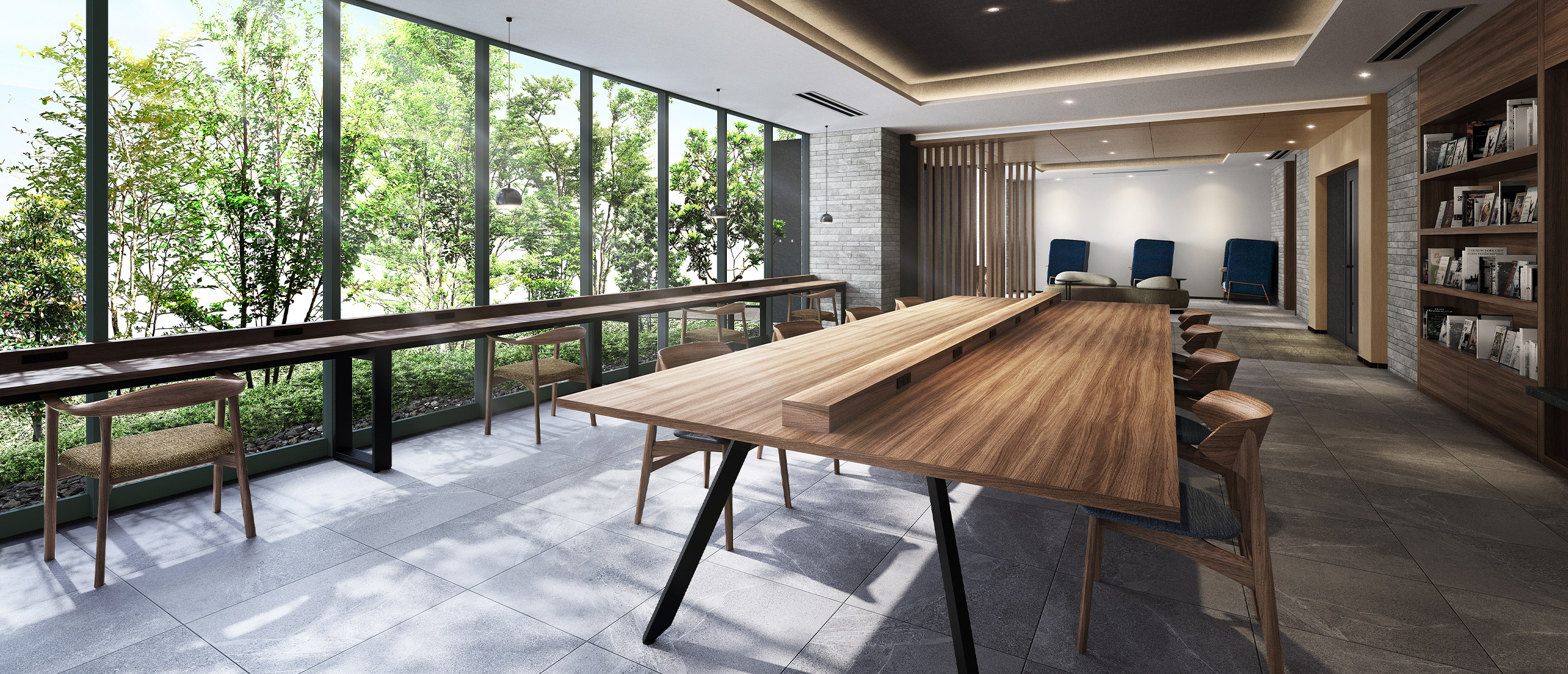 暮らしを豊かに彩る110m²超の共有ラウンジ