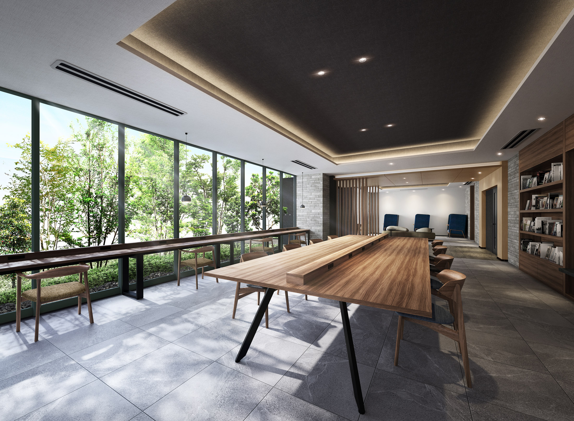 様々な席を設け、テレワークや勉強、待ち合わせなど用途に合わせて快適にご利用いただける空間です。