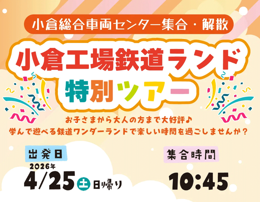 - 3月20日(金・祝)出発>小倉工場鉄道ランド特別ツアー