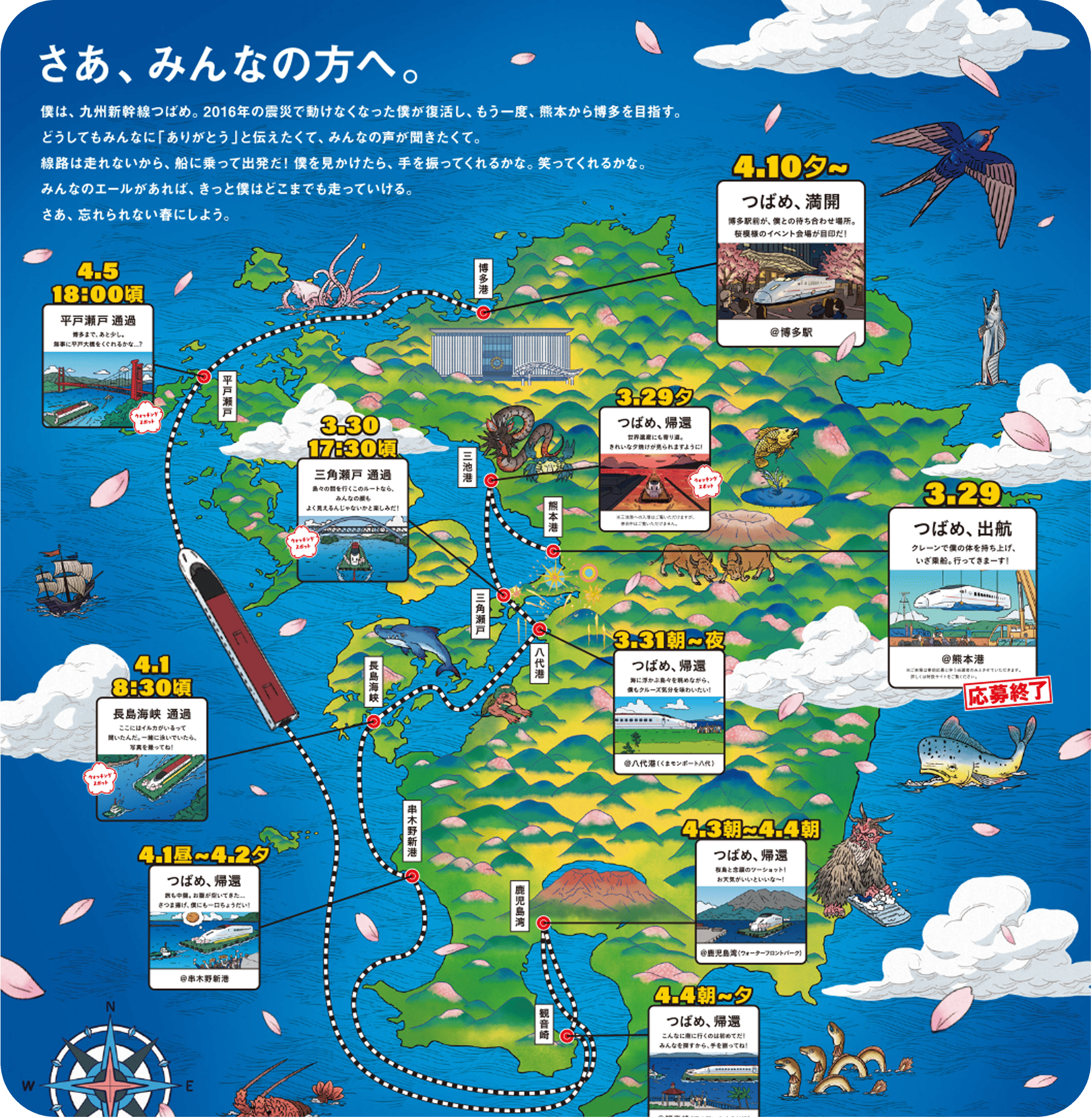 さあ、熊本から鹿児島、博多まで。